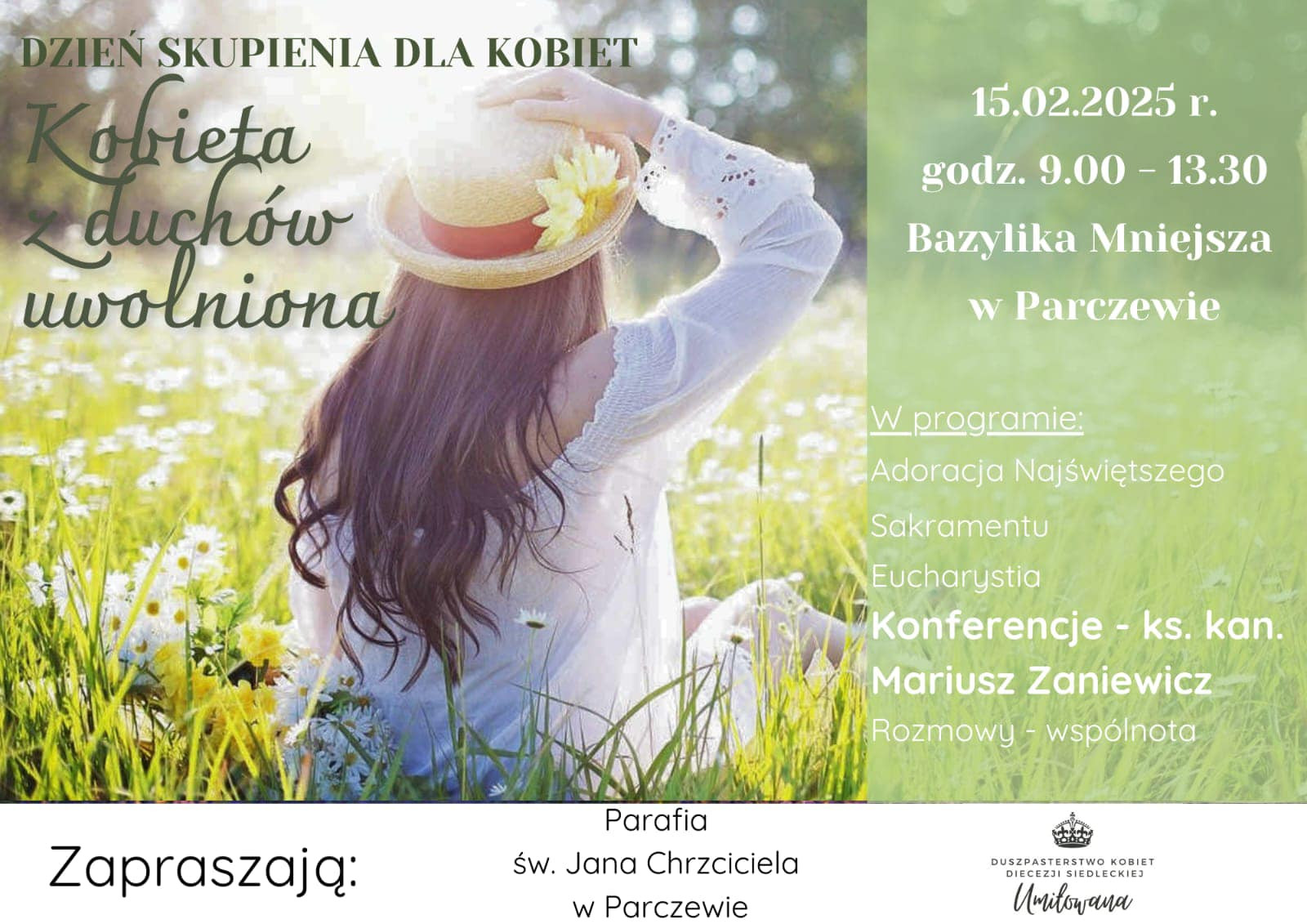 Zaplanuj czas dla Boga. Razem z nami wyrusz na spotkanie z Nim i z samą sobą, aby stawać się coraz bardziej kobietą wolną i radosną w Panu! Zaprasza wspólnota kobiet „Umiłowana”. Temat spotkania: "Kobieta z duchów uwolniona".
